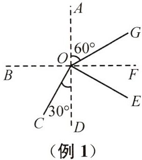 例1 (2025南京金陵中学河西分校期中)如图所示,一束光在两种介质的界面处同时发生了反射和折射,$∠COE=90^{\circ }$,则折射角大小为