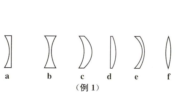 例1 如图所示的透镜中,属于凸透镜的有
