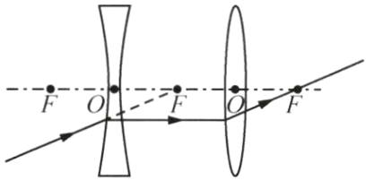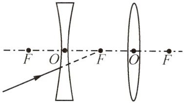 例3 (2024山东枣庄)如图所示,一束光射向凹透镜,请画出该光经过凹透镜、凸透镜的折射光路.