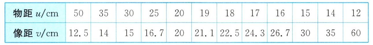 3 (2025连云港海宁中学月考)小明“探究凸透镜成像的规律”,通过实验得到了如表所示的实验数据,当$u=23 cm$时,像距$v$的范围大致应该在