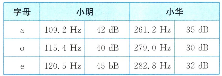 12 易错题 (2025泰州二中附属初中期中)如图所示,小明和小华读出a、o、e三个拼音字母,利用软件采集到的数据如表,分析可知 (