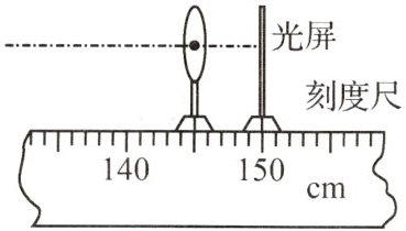 cm;当$u=10$ cm时,在光屏上能得到一个倒立放大