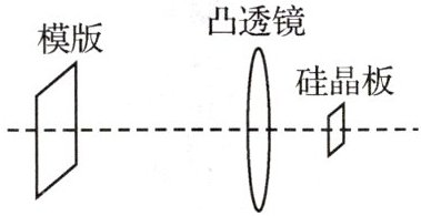 C. 要使硅晶板上成像,模板应放置在凸透镜的两倍焦距以内