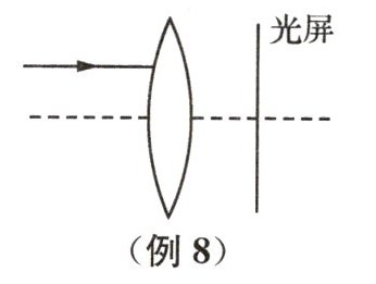 例8 (2024泰州高港模拟)如图所示,将凸透镜正对一束水平激光放置,在透镜右侧竖直的光屏上观察到一光斑.若只移动凸透镜,下列关于光斑移动情况判断正确的是 (