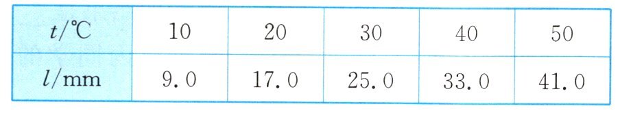 (3) 由实验数据可知,当水温为25℃时,对应的液柱长度l为______mm,当水平管中液柱长度l为65mm时,水的温度为______℃。该温度计的量程为______℃。