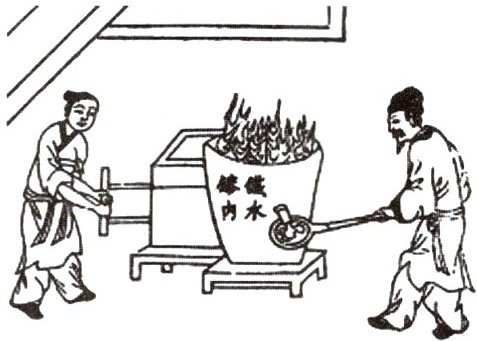 例1 (2024苏州吴江模拟)如图所示,我国古代科技著作《天工开物》中,对釜的铸造有“铁化如水,以泥固针铁柄勺从嘴受注”这样的记载.其中“铁化如水”描述的物态变化是