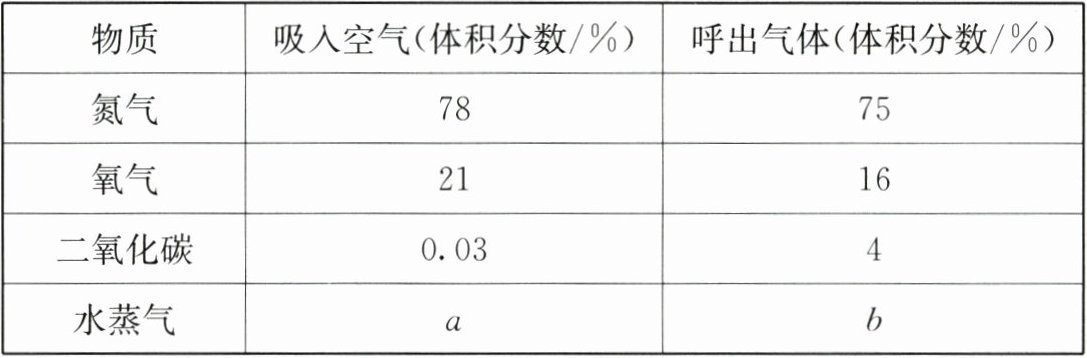 ②呼吸时消耗氧气产生二氧化碳,该过程属于______(填“物理”或“化学”)变化。呼吸前后气体中水蒸气含量变化较大,实验中其体积分数b______(填“>”“<”或“=”)a。