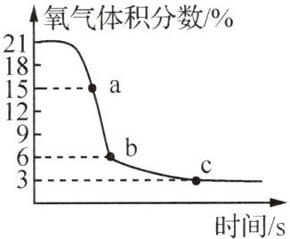 9. (衡阳)拉瓦锡用定量的方法研究了空气的成分。某兴趣小组利用氧气传感器来检测足量红磷燃烧过程中氧气的含量,如图所示,下列判断正确的是 (