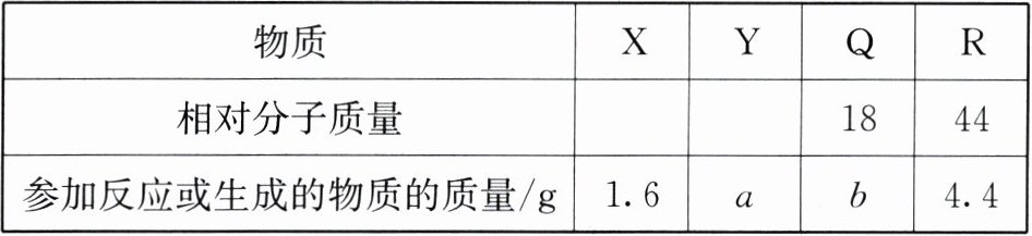 14. (随州)在反应$X+2Y\xlongequal{\phantom{\rule[-.2em]{0ex}{0ex}}}2Q+R$中,$1.6\ g\ X与足量的Y$完全反应,生成$4.4\ g\ R$,则$a:b$等于 ( )