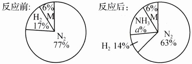 13. (扬州)将一定量的$N_{2}$、$H_{2}和物质M$置于密闭容器中,在特定条件下发生化学反应,反应前后各物质的质量分数如图所示。下列说法不正确的是 ( )