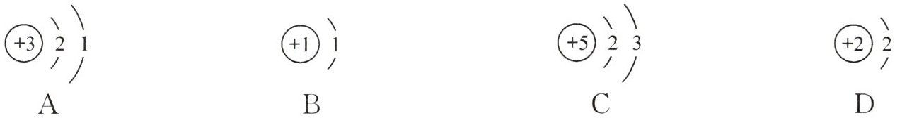 9. 月球土壤中含有大量氦3原子,它可能成为未来核能的重要原料。氦3原子核内有2个质子和1个中子。氦3原子结构示意图是 (