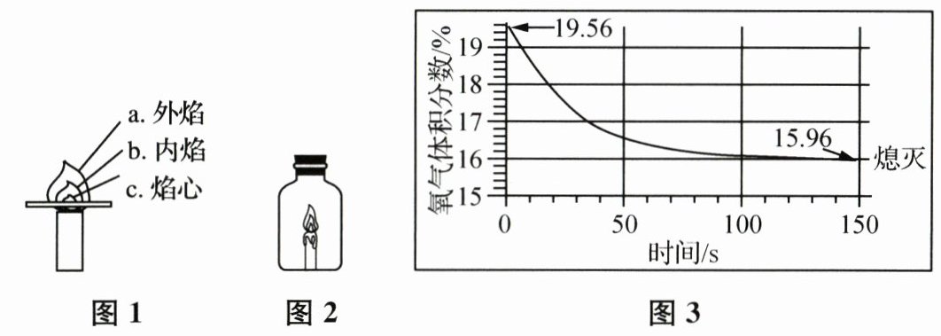 (2)点燃蜡烛,观察到火焰分为外焰、内焰、焰心三层。把一根火柴梗放在火焰中(如图1)约1s后取出可以看到火柴梗的a处最先变黑,说明蜡烛火焰的______温度最高。