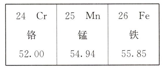 D. 等质量的铬、锰、铁中,含原子个数最多的是铬