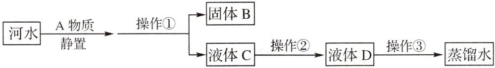 11. 小刚收集到一瓶浑浊的河水,他要模拟自来水厂的净水过程,最终制成蒸馏水。其实验过程如下图所示,请回答以下问题。
