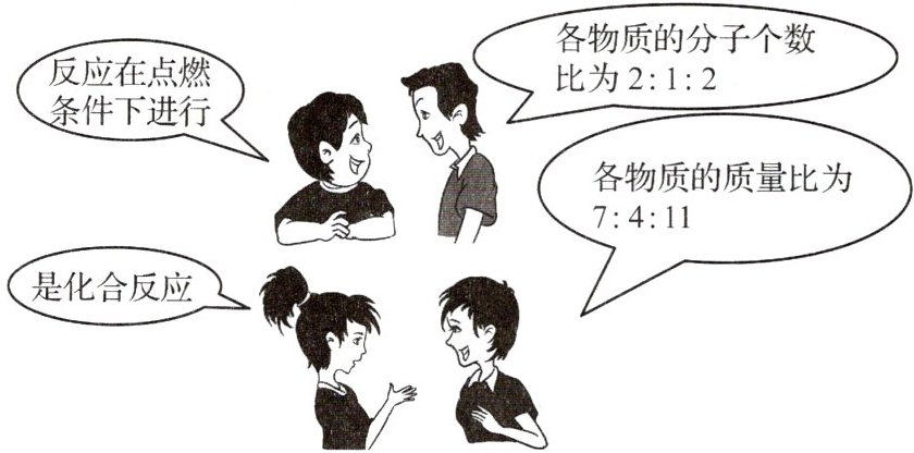 )①反应条件 ②哪些物质是反应物 ③哪些物质是生成物 ④反应物和生成物之间的质量关系