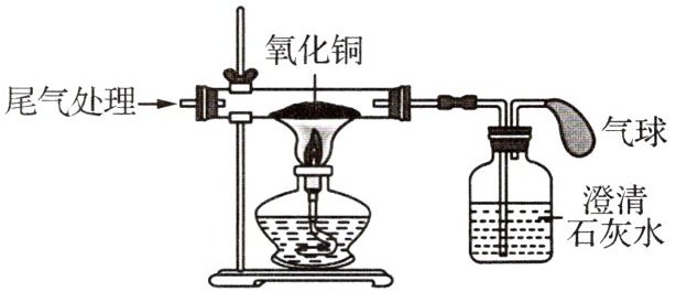 8. (陕西)某工业尾气中可能含有$H_{2}$、CO和$CO_{2}$中的一种或几种,为检验其成分,小明同学按右图装置进行实验时,观察到黑色固体变红,澄清石灰水变浑浊,由此实验现象得出尾气的组成情况可能有 (