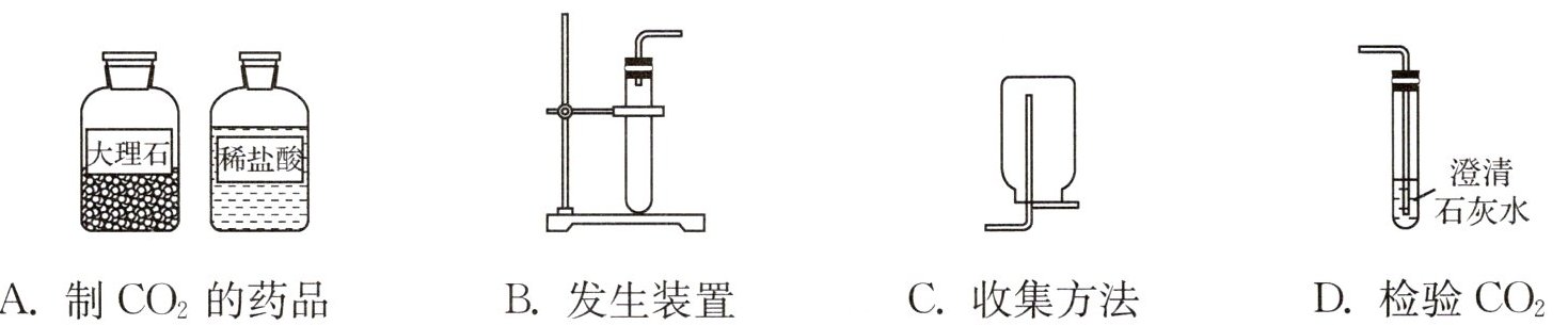 5. (北京)下列关于CO₂的实验室制取及检验的说法不正确的是 (