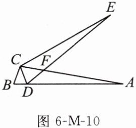 12. (14分)如图6-M-10,在$\triangle ABC$中,点D在AB边上,$CB = CD$,将边CA绕点C旋转到CE的位置,使得$\angle ECA = \angle DCB$,连接DE与CA交于点F,且$\angle B = 70^{\circ}$,$\angle A = 10^{\circ}$.