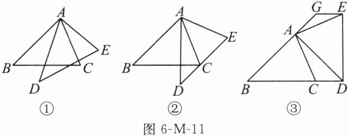 如图6-M-11,在$\triangle ABC$中,$AB = BC$,$AC \neq AB$,$\angle ABC = 45^{\circ}$,将$\triangle ABC$绕点A逆时针旋转得到$\triangle ADE$,点B,C的对应点分别是点D,E.
