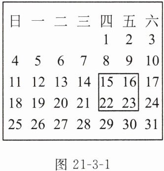 2. 如图21-3-1是2025年5月的月历,在此月历上可以用一个方框圈出4个数.若圈出的4个数中最小数与最大数的乘积为65,则这个最小数为