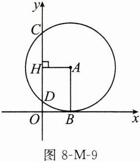 12. (14 分)如图 8-M-9,点 A 在第一象限内,$\odot A$与 x 轴相切于点 B,与 y 轴相交于点 C,D,连接 AB,过点 A 作$AH⊥CD$于点 H.