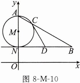 13. (14 分)如图 8-M-10,AN 是$\odot M$的直径,$NB// x$轴,AB 交$\odot M$于点 C.