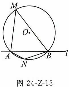 16. 如图24-Z-13所示,$\odot O$的半径是2,直线$l$与$\odot O$相交于$A$,$B$两点,$M$,$N$是$\odot O$上的两个动点,且在直线$l$的异侧.若$\angle AMB = 45^{\circ}$,则四边形$MANB$面积的最大值是________.