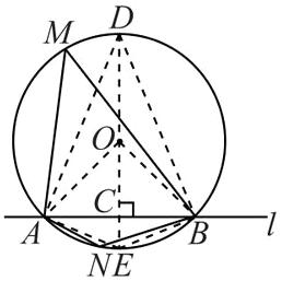 4$\sqrt{2}$ [解析] 如图, 过点 O 作 OC⊥AB 于点 C, 交⊙O 于 D, E 两点, 连接 OA, OB, DA, DB, EA, EB.