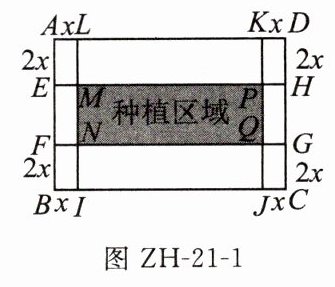 某农户承包了一块矩形果园ABCD,图ZH - 21 - 1是果园的平面图,其中AB = 200m,BC = 300m。准备在它的四周铺设道路,上下两条横向道路的宽度都为2x m,左右两条纵向道路的宽度都为x m,中间部分种植水果。已知道路的路面造价是50元/m²;出于货车通行等因素的考虑,道路宽度x m不超过12m,且不小于5m。