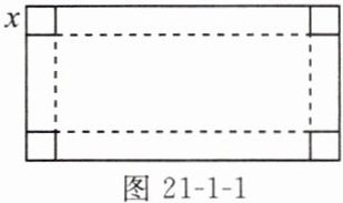 (1)如图21-1-1,有一块矩形铁皮,长100cm,宽50cm,在它的四角各切去一个同样的正方形,然后将四周突出部分折起,就能制作一个无盖方盒。如果要制作的无盖方盒的底面积为3600cm²,那么铁皮各角应切去多大的正方形?