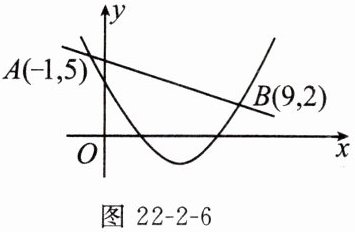 12. 如图22-2-6所示,一次函数$y_{1}=kx+n$与二次函数$y_{2}=ax^{2}+bx+c$的图象相交于$A(-1,5),B(9,2)$两点,则关于x的不等式$kx+n≥ax^{2}+bx+c$的解集为(