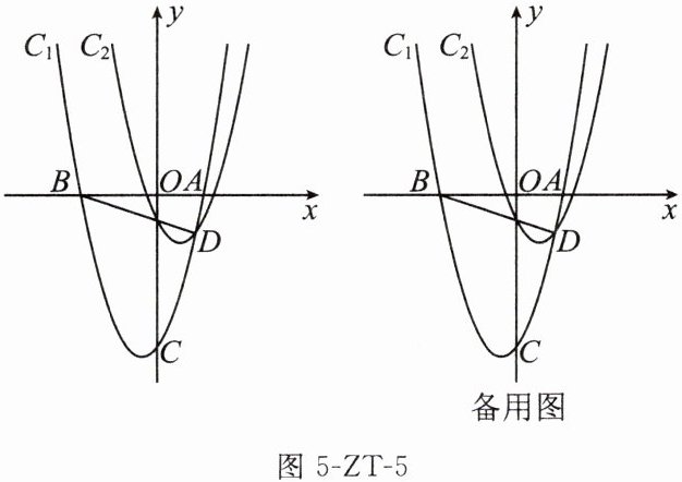 4. (2024泰安)如图5-ZT-5,抛物线$C_{1}:y=ax^{2}+\frac {4}{3}x-4$经过点$D(1,-1)$,与x轴交于点A,B。
