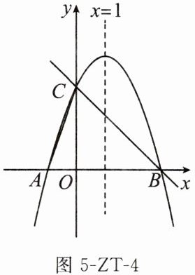 3. 如图5-ZT-4,抛物线$y=ax^{2}+2x+c$的对称轴是直线$x=1$,与x轴交于点A,$B(3,0)$,与y轴交于点C,连接AC。