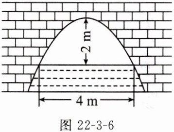 图22-3-6中是抛物线形拱桥,当拱顶离水面2m时,水面宽4m.水面下降1m,水面宽度增加多少?