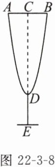 1. 小明以二次函数$y=2x^{2}-4x+8$的图象为灵感设计了一款杯子,如图22-3-8为杯子的设计稿.若$AB=4$,$DE=3$,则杯子的高CE为(
