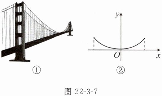 例(教材补充例题)如图22-3-7①,悬索桥两端主塔塔顶之间的主悬钢索,其形状可近似地看作抛物线,水平桥面与主悬钢索之间用垂直钢索连接.已知两端主塔之间的水平距离为900m,两主塔塔顶距桥面的高度为81.5m,主悬钢索最低点离桥面的高度为0.5m.