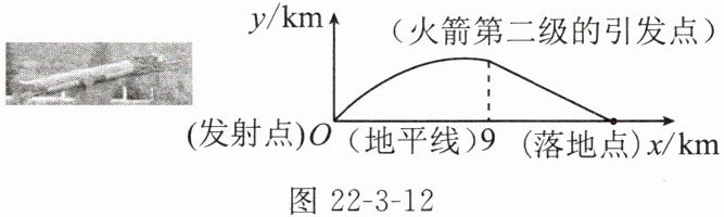 某科技小组运用信息技术模拟火箭运行过程.如图22-3-12,以发射点为原点,地平线为x轴,垂直于地面的直线为y轴,建立平面直角坐标系,分别得到抛物线$y=ax^{2}+x$和直线$y=-\frac {1}{2}x+b$.其中,当火箭运行的水平距离为9km时,自动引发火箭的第二级.