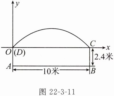 7. 已知一条双向公路隧道,其横断面由抛物线和矩形ABCD的三边组成,隧道的最大高度为4.9米,$AB=10$米,$BC=2.4$米,现把隧道横断面放在如图22-3-11所示的平面直角坐标系中,有一辆高为4米,宽为2米的装有集装箱的汽车要通过该隧道,如果不考虑其他因素,汽车的右侧至少离开隧道石壁多少米才不至于碰到隧道顶部?