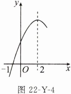 8. (2024 日照)已知二次函数 $ y = ax^2 + bx + c $ 图象的一部分如图 22-Y-4 所示,该函数图象经过点 (-1,0),对称轴为直线 $ x = 2 $.有下列结论:① $ abc < 0 $;② $ a + c = b $;③多项式 $ ax^2 + bx + c $ 可分解因式为 $ (x + 1)(x - 5) $;④当 $ m > -9a $ 时,关于 $ x $ 的方程 $ ax^2 + bx + c = m $ 无实数根.其中正确的有(
