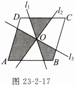 变式 如图23-2-17,四边形ABCD是菱形,O是其两条对角线的交点,直线l₁,l₂,l₃均过点O.当菱形的两条对角线的长分别为6和8时,图中阴影部分的面积为