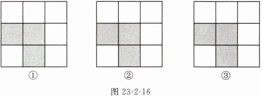 例3 (教材补充例题)图23-2-16是3×3的正方形网格,其中已有3个小正方形涂上了阴影,分别按下列要求作图.