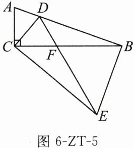 5. 如图6-ZT-5,在$Rt\triangle ABC$中,$∠ACB=90^{\circ }$,将$\triangle ABC$绕点C顺时针旋转,得到$\triangle DEC$,点B的对应点为点E,点A的对应点D落在线段AB上,DE与BC相交于点F,连接BE.