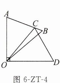 4. 如图6-ZT-4,$\triangle COD$是由$\triangle AOB$绕点O顺时针旋转$40^{\circ }$后得到的图形.若点C恰好落在AB上,且$∠AOD$的度数为$90^{\circ }$,则$∠B$的度数是______