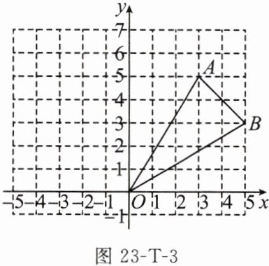 例3 (1)如图23-T-3,△ABO的顶点坐标分别为A(3,5),B(5,3),O(0,0),若将△ABO绕点O按逆时针方向旋转90°,再向右平移2个单位长度,得到△A′B′O′,则点A的对应点A′的坐标是 (