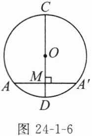 1. 如图24-1-6所示,从上面[推理证明]的解答过程可知,如果⊙O的直径CD垂直于弦AA',垂足为M,那么点A和点A'是对称点,图中除OC=OD外,还有哪些相等的线段和劣弧?
