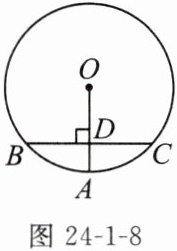 例2(教材补充例题)如图24-1-8,A是⊙O上一点,连接OA,弦BC⊥OA于点D.若OD=2,AD=1,则BC的长为 (
