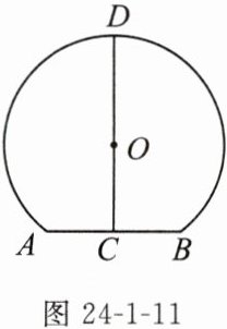4. 如图24-1-11是一款拱门的示意图,其中拱门最下端AB=18分米,C为AB的中点,D为拱门最高点,圆心O在线段CD上,CD=27分米,求拱门所在圆的半径。