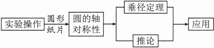 |实验操作→圆形纸片→圆的轴对称性→垂径定理、推论→应用|