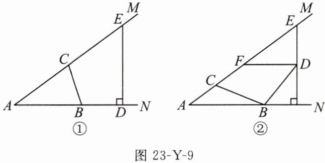 (1)如图23-Y-9①,当点D在射线AN上时,求证:C是AE的中点;