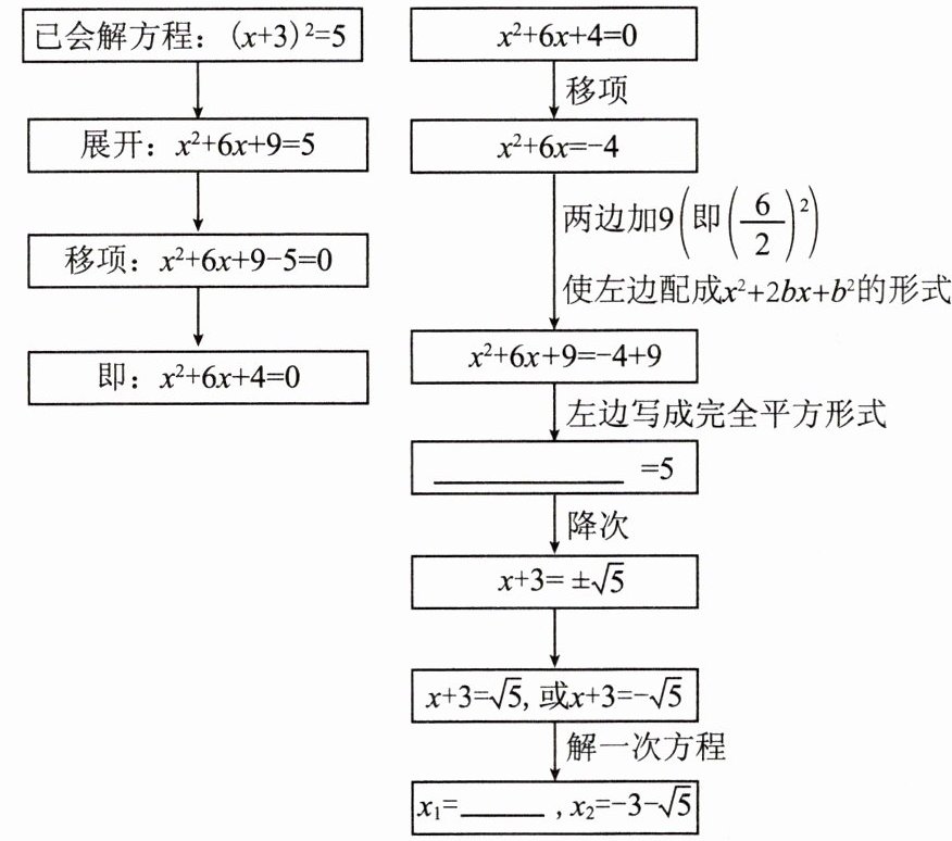 请看下面框图左边的提示,然后把左边从下向上尝试得到右边部分,并进行适当的填空: